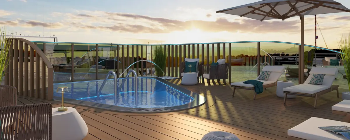 Cutting-edge environmental technology meets luxurious design—this philosophy remains at the heart of AMADEUS River Cruises as we proudly introduce our latest ground-breaking vessel. Launching in May 2026, the AMADEUS Aurea will set new standards for sustainable luxury cruising, featuring an advanced hybrid propulsion system, a high-performance battery, and a heated outdoor pool.