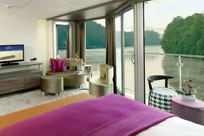 These staterooms feature the AMADEUS Signature Bed (available as a double or twin), a drop-down panoramic window for uninterrupted river views, a spacious bathroom with a walk-in shower and premium Rituals® bathing products, walk-in wardrobe, flat-screen TV, individual climate control, in-room safe, hair dryer, and direct dial telephone — ensuring a comfortable and refined travel experience.