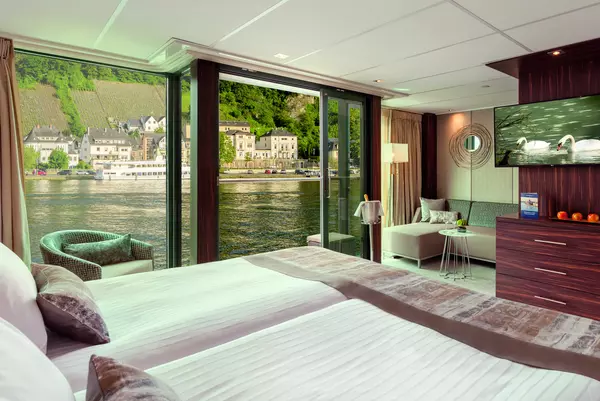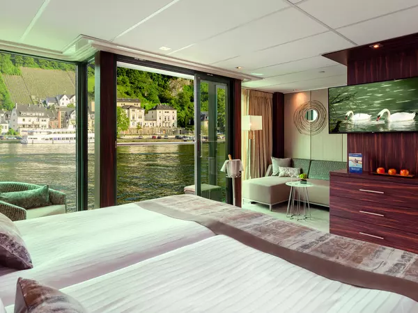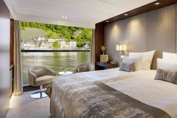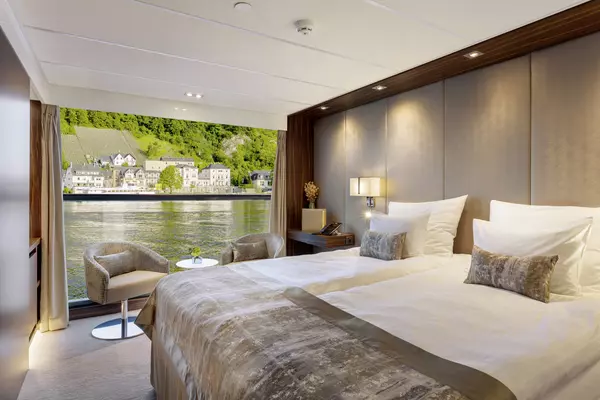 These staterooms feature the AMADEUS Signature Bed (available as a double or twin), a drop-down panoramic window for uninterrupted river views, a spacious bathroom with a walk-in shower and premium Rituals® bathing products, walk-in wardrobe, flat-screen TV, individual climate control, well-stocked minibar, in-room safe, hair dryer, and direct dial telephone — ensuring a comfortable and refined travel experience.