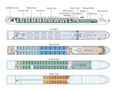 Designed with both style and practicality in mind, our Haydn Deck cabins offer a peaceful and well-equipped space for your journey.