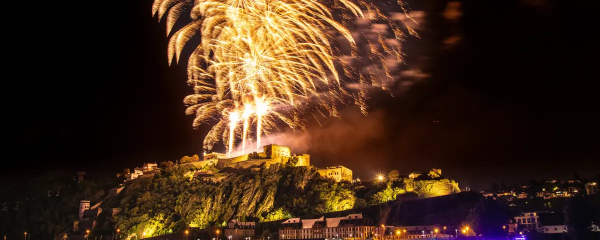 The highlight of this trip is a stunning pyrotechnic display featuring colorful fountains, Catherine wheels and crackling comets. Enjoy the spectacle of the romantic Rhine valley bathed in the glow of 800 red lights and magnificent hilltop firework displays. The opening fireworks accompany the start of the boat parade, which provides some 22,000 passengers with mesmerizing views of the illuminated castles, palaces and riverside promenades.