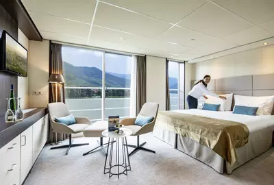 - Luxury accommodation in an outside river-view stateroom of your choice: Spacious Mozart Suites with a walk-out balcony, stateroom cabins on Mozart and Strauss Decks with drop-down Panorama Retractable Windows offering a wide-open view (except Amadeus Brilliant)