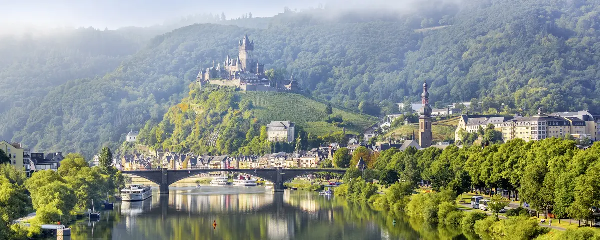 The vessel departs from Koblenz in the early hours, and makes a detour along the Moselle River to the most romantic part of the valley and the little town of Cochem. The magnificent Reichsburg castle which overlooks the town, dominates the landscape. Down below, the town, with its narrow streets, half-timbered houses, and numerous restaurants, is an ideal setting to taste the wines of the region. Back on board, dinner is served as the journey continues to Cologne.