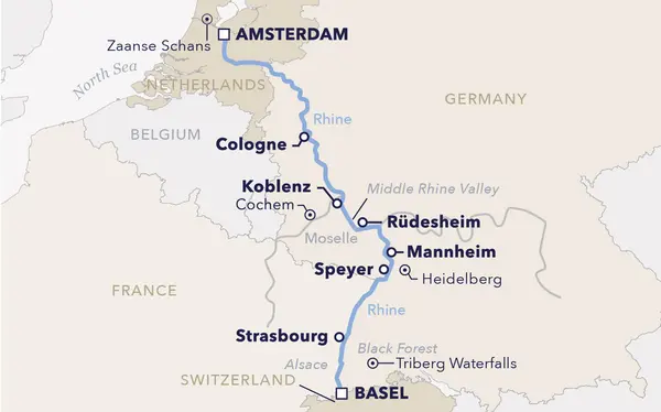 Discover the many beautiful facets of “Father Rhine” during this week-long cruise along one of the most important and attractive rivers of Europe. Delight in the panorama of the myth-enshrouded Middle Rhine Valley with its winelands, the prominent Lorelei rock and the highest density of castles in the world.